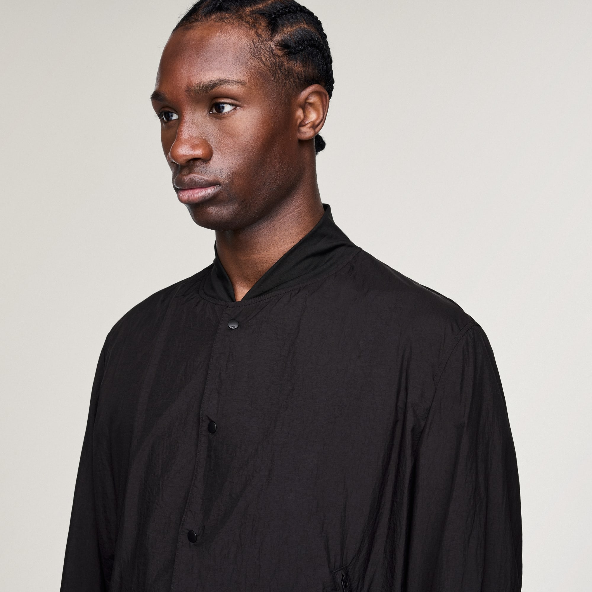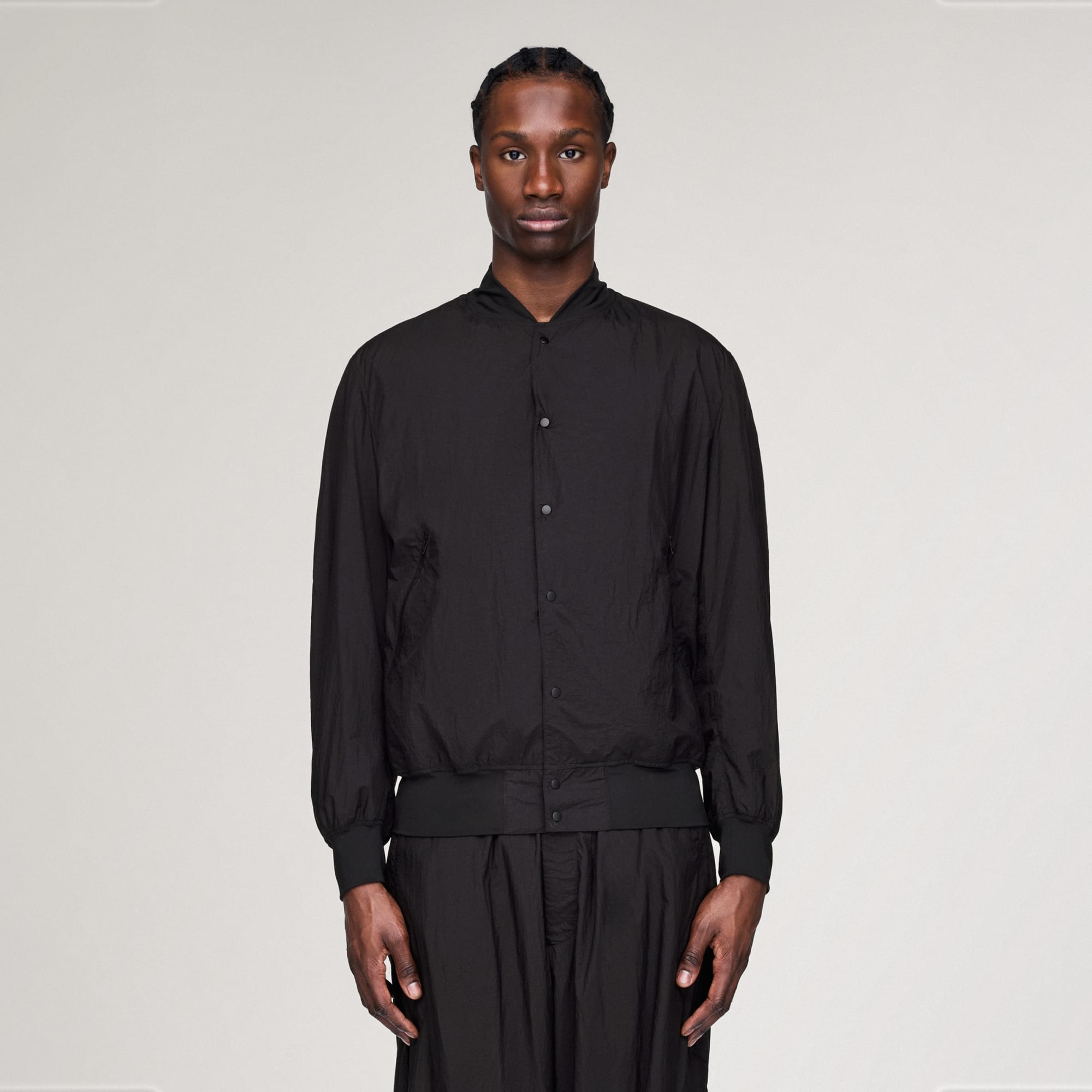 - Kraag in bomberstijl; Drukknoopsluiting