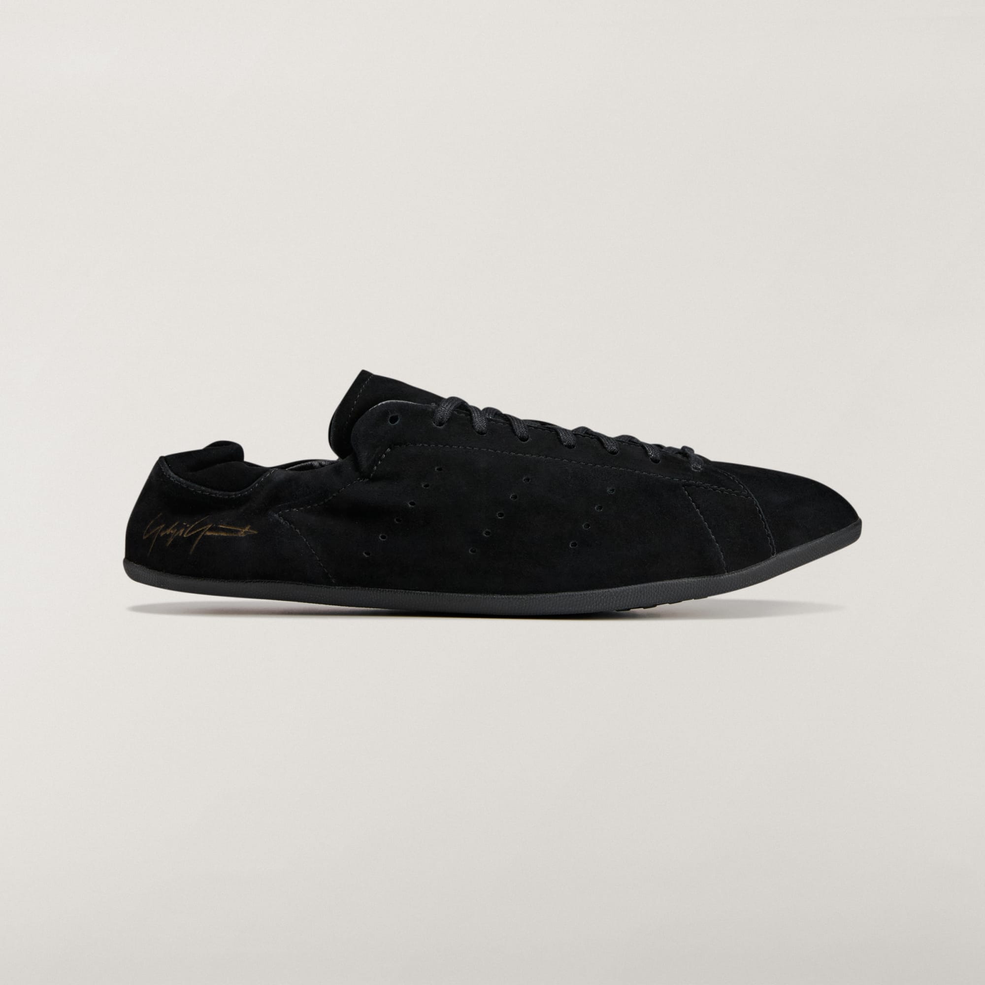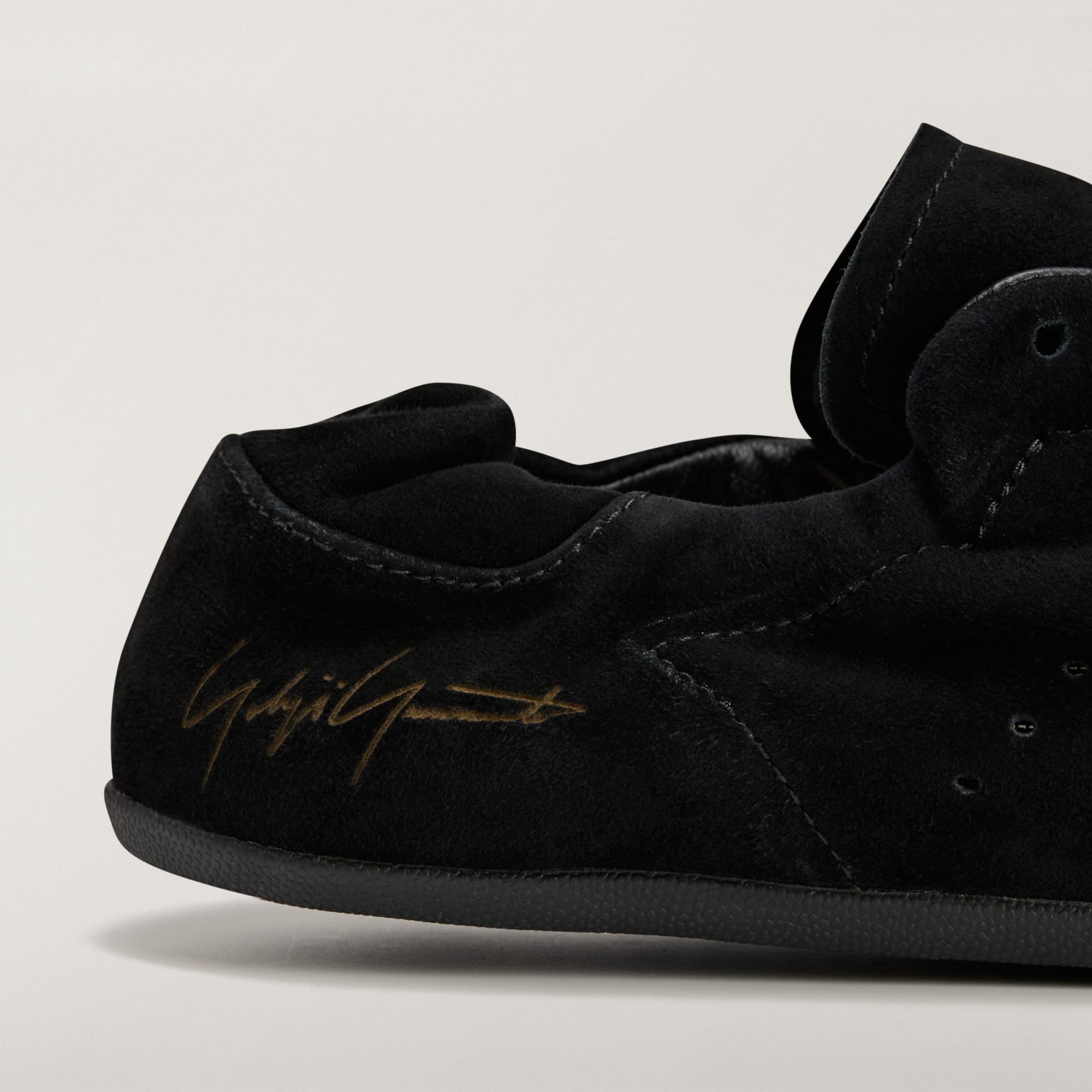 De met laser gegraveerde Yohji Yamamoto-handtekening op de hiel en het Y-3 logo op de tong verwijzen op subtiele wijze naar de kunstzinnigheid achter het ontwerp.