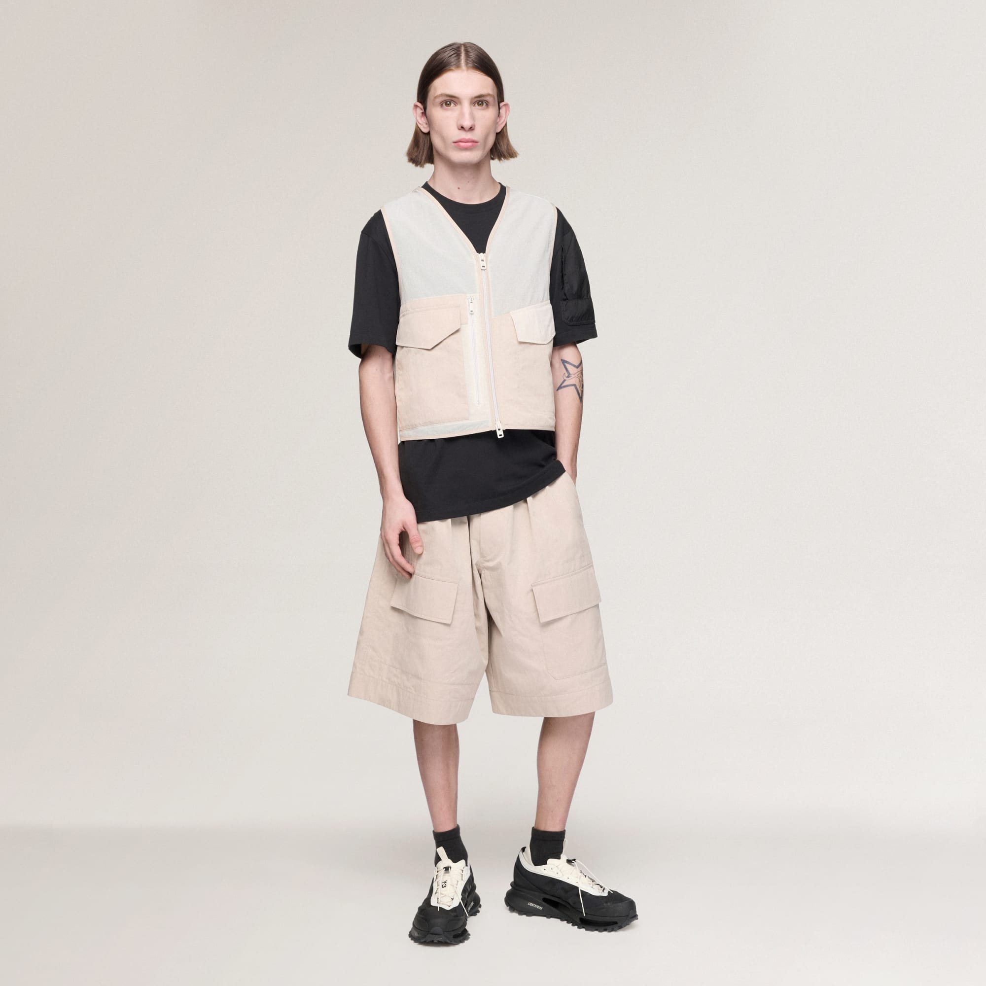 Maak kennis met het Y-3 Tactical Utility gilet, waar functionaliteit en mode naadloos in elkaar overgaan. De bovenste helft van het gilet is gemaakt van keperstof voor slijtagebestendigheid en een verfijnde textuur, terwijl de onderste helft is gemaakt van lichtgewicht mesh voor ademend vermogen en comfort. Het reguliere model is voorzien van drie verstelbare riempjes met gesp aan de achterkant om de pasvorm en breedte naar wens aan te passen. Rond de zakken vind je stukken van verschillende materialen voor extra stevigheid en visuele aantrekkingskracht. Het satijnen opgestreken logo in dezelfde kleur op de bovenrug voegt een subtiel merkdetail toe. Of je nu door de stad navigeert of nieuw terrein verkent, dit gilet van adidas en Y-3 is je go-to voor functionele stijl.