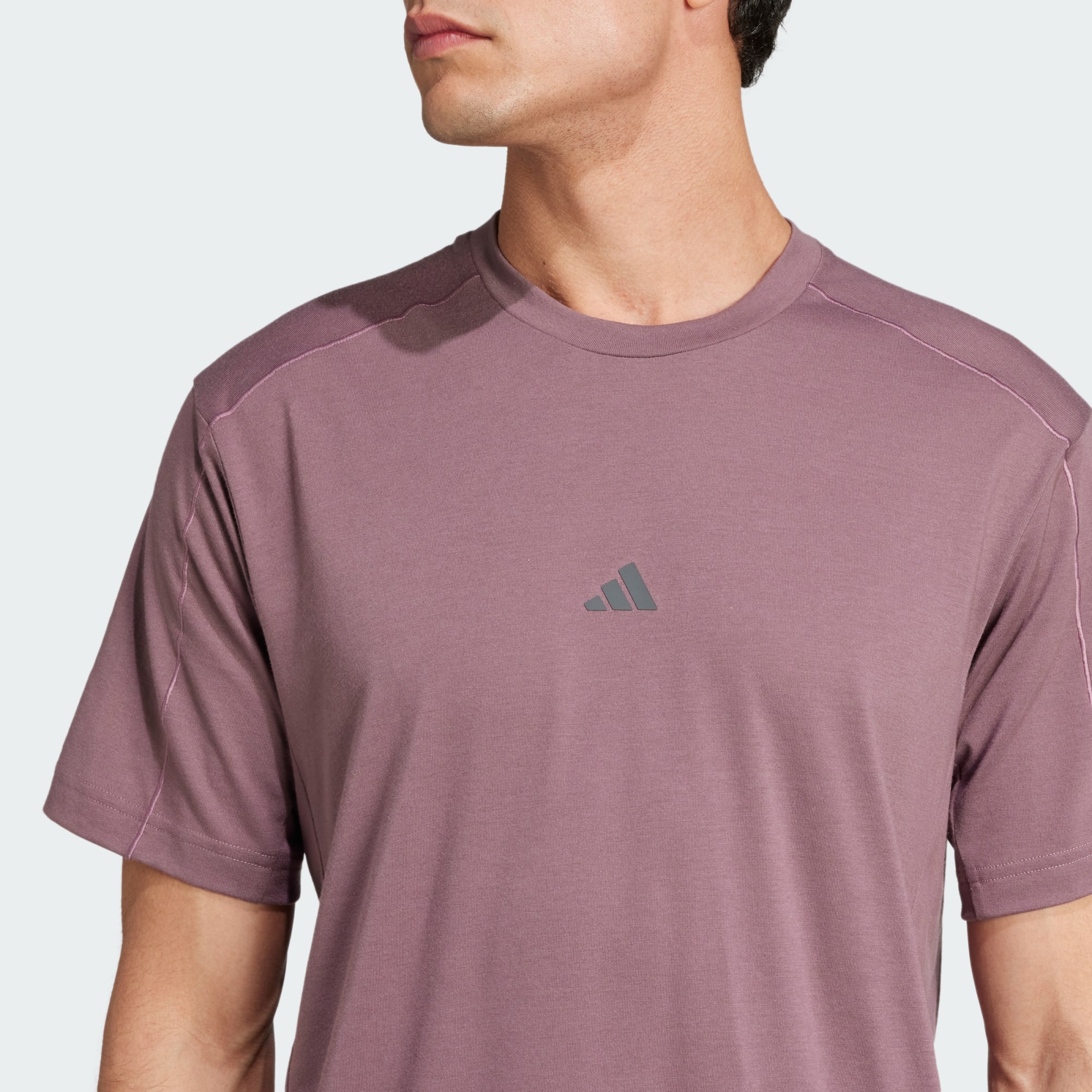 Een AEROREADY yoga-T-shirt dat deels is gemaakt met gerecycled materiaal.