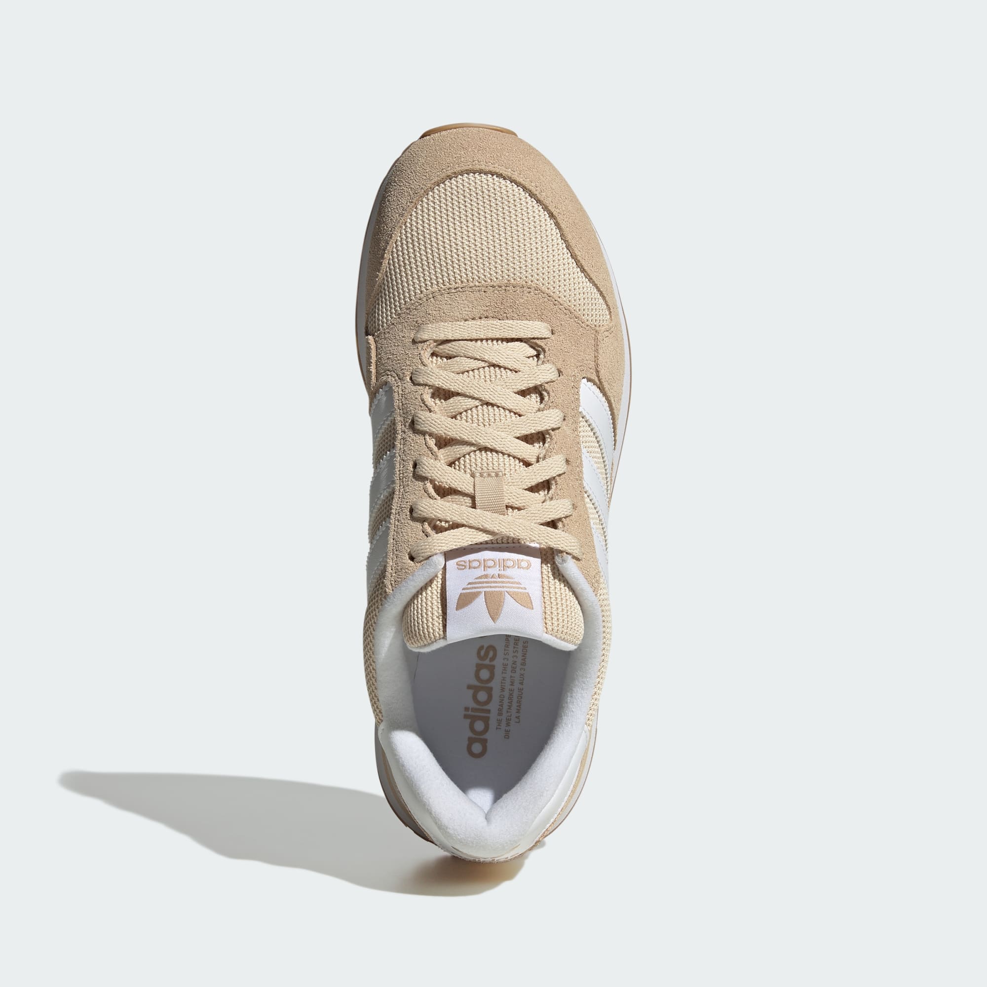 De normale pasvorm en vetersluiting zorgen voor een stevige pasvorm voor allerlei avonturen. De rubberen loopzool biedt betrouwbare grip, terwijl de verzonken strepen en Trefoil-logo's een vleugje retro flair toevoegen.